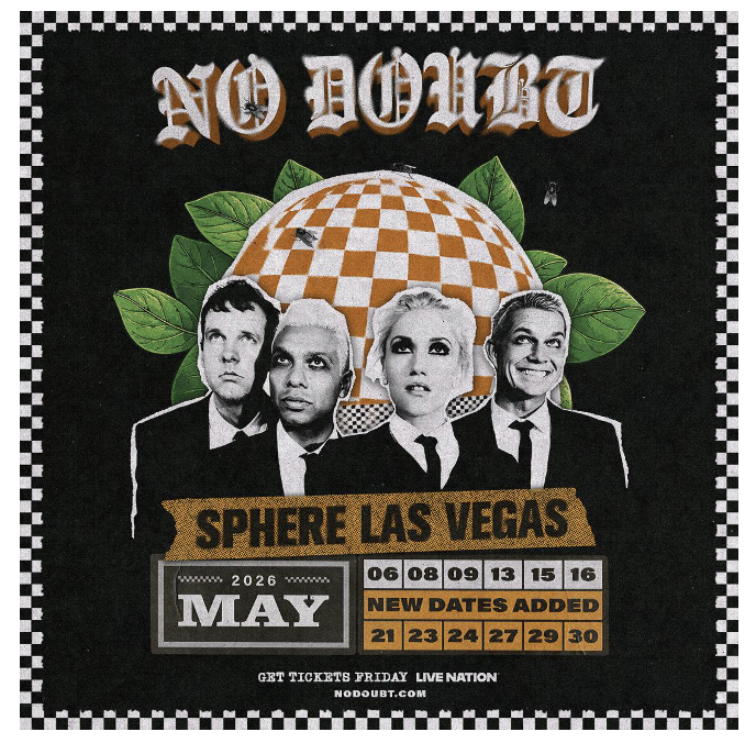 Beloved global icons No Doubt — comprised of Gwen Stefani, Tony Kanal, Tom Dumont, and Adrian Young — have announced six additional dates for their highly anticipated No Doubt Live at Sphere residency due to incredible fan demand. The newly added shows are set for May 21, 23, 24, 27, 29, and 30, following the previously announced dates on May 6, 8, 9, 13, 15, and 16.
