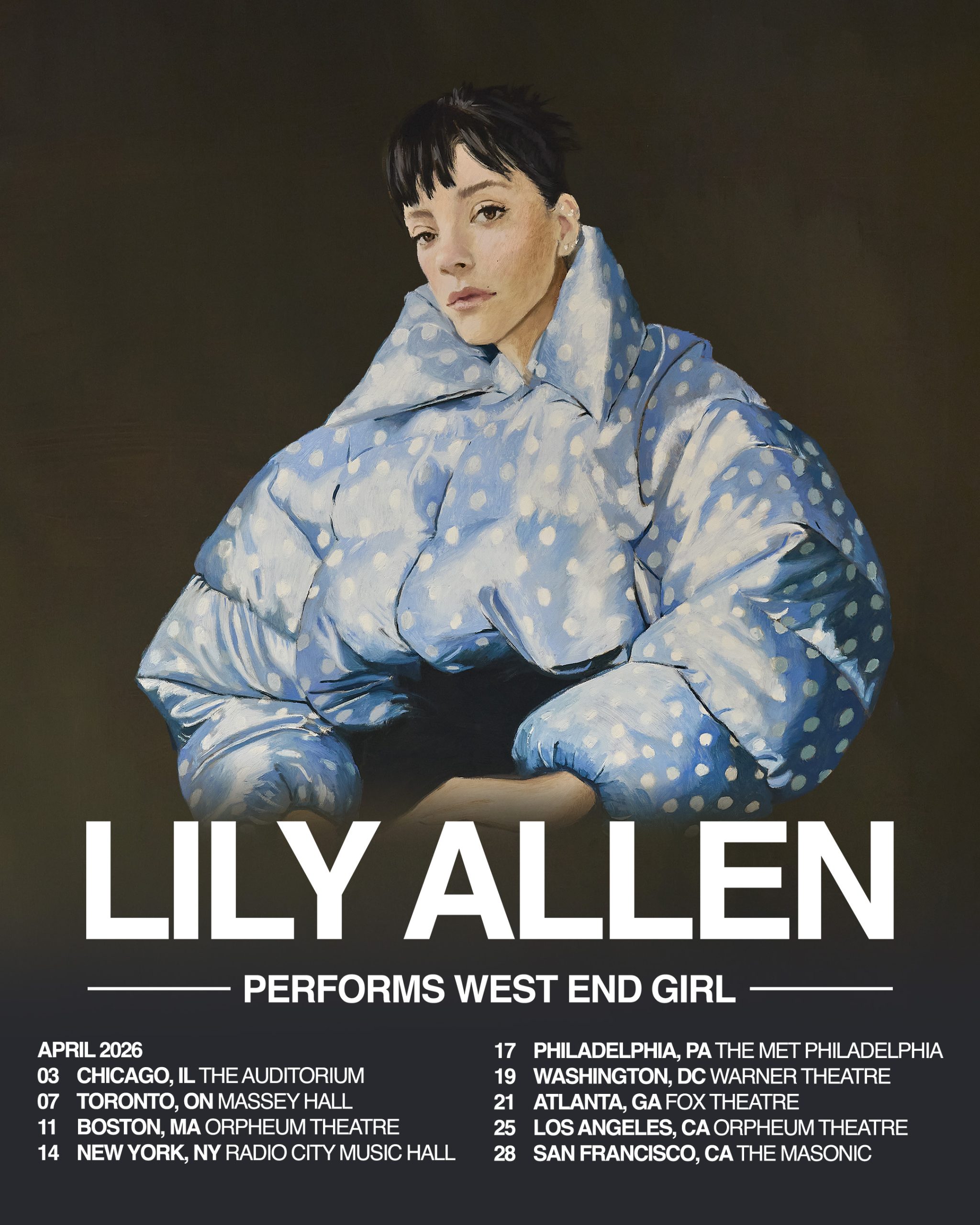 Following the massive global success of her critically acclaimed album West End Girl — now surpassing 150 million streams — the remarkable Lily Allen is ready to bring her latest music to fans across the U.S. and Canada. Today, Allen announced her highly anticipated North American headline tour for Spring 2026.