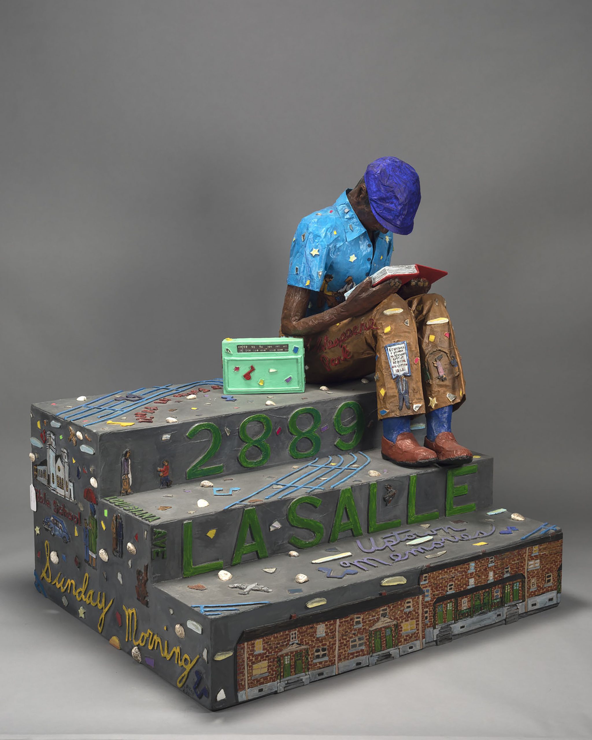 Willie Birch: Stories to Tell is organized chronologically across three major sections. It begins with Birch’s early work from the late 1960s, moves through his shift toward papier mâché in the 1980s, and concludes with large scale charcoal and acrylic works on paper. Major installation works are interspersed throughout, often presented in more intimate gallery spaces to allow for deeper engagement.
